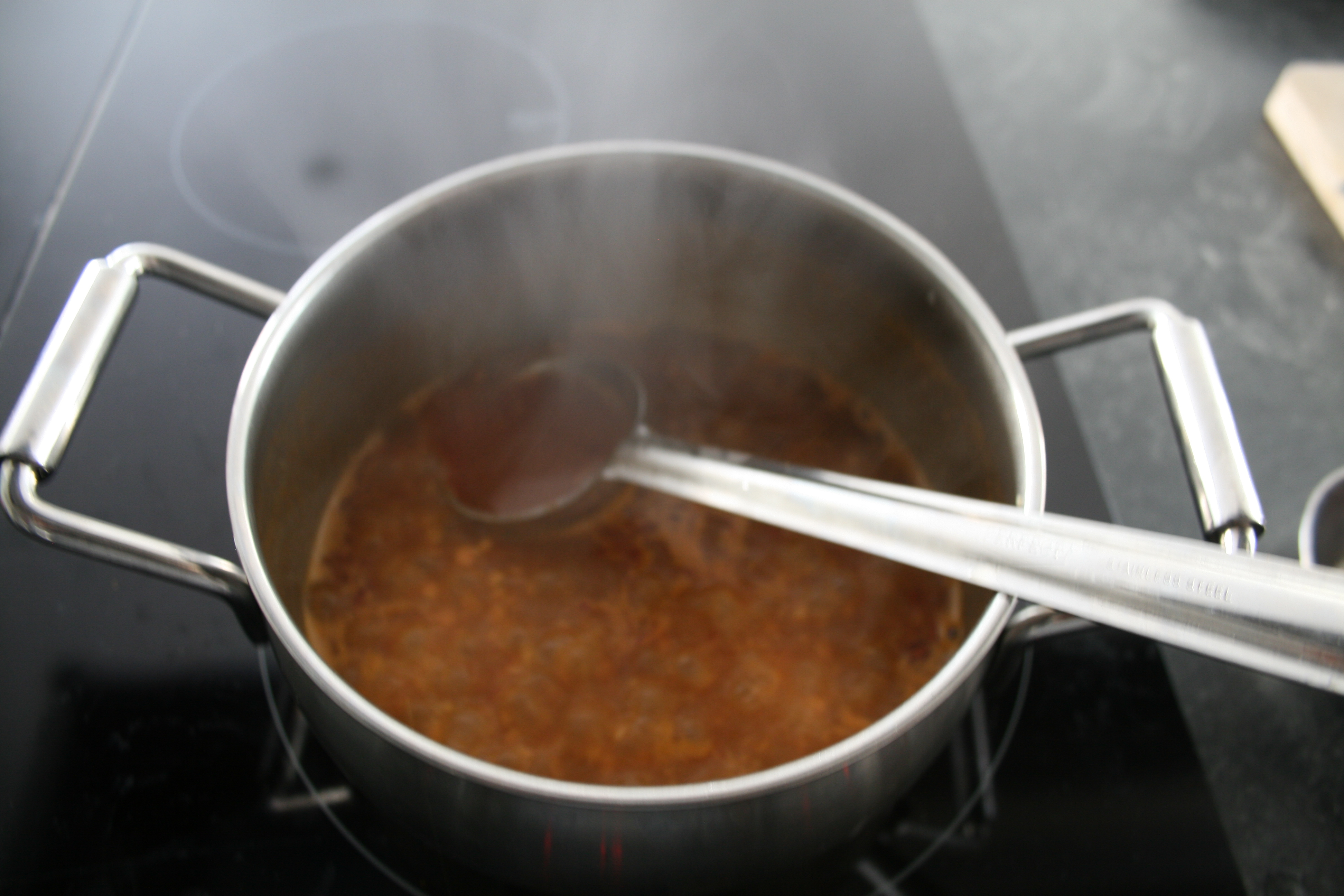 Tilsett linser og vann. Kok alt sammen i ca 15 min. Jo mer væske du tar, desto mildere og tynnere blir suppen – du kan jo selvfølgelig smake underveis også 🙂