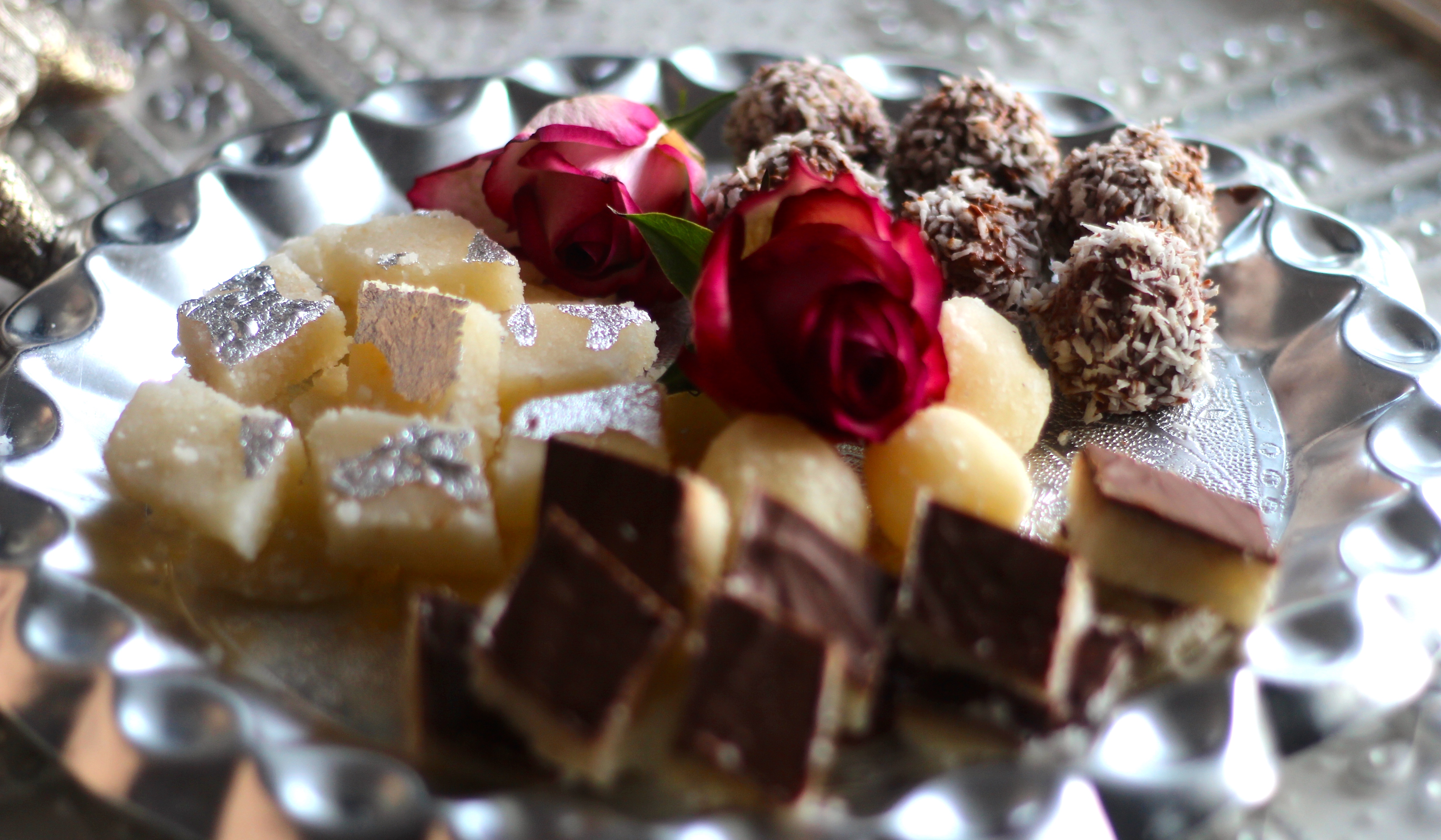 Dette her er fusion på sitt beste! Her er noe som jeg har blitt sååå fornøyd med og akkurat i tide til Diwali på søndag. Hør på dette, hvetefri (ja, jeg har lært meg at det er bedre enn å skrive glutenfritt!), egg og melkefri. Riktignok har jeg hatt i malte mandler, men de kan droppes til fordel for mer kokosmasse. OG, etter smaken på disse, fikk jeg flere nye ideér (kommer snart på bloggen).