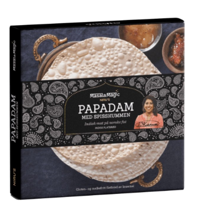 Papadam er soltørket flatbrød av linsemel som stekes kort i 30-40 sekunder på 250 grader i stekeovnen. De kan lages enda raskere med en pinsett på grillen eller en gassbluss. Følg videolenken nedenfor 👍🏽
